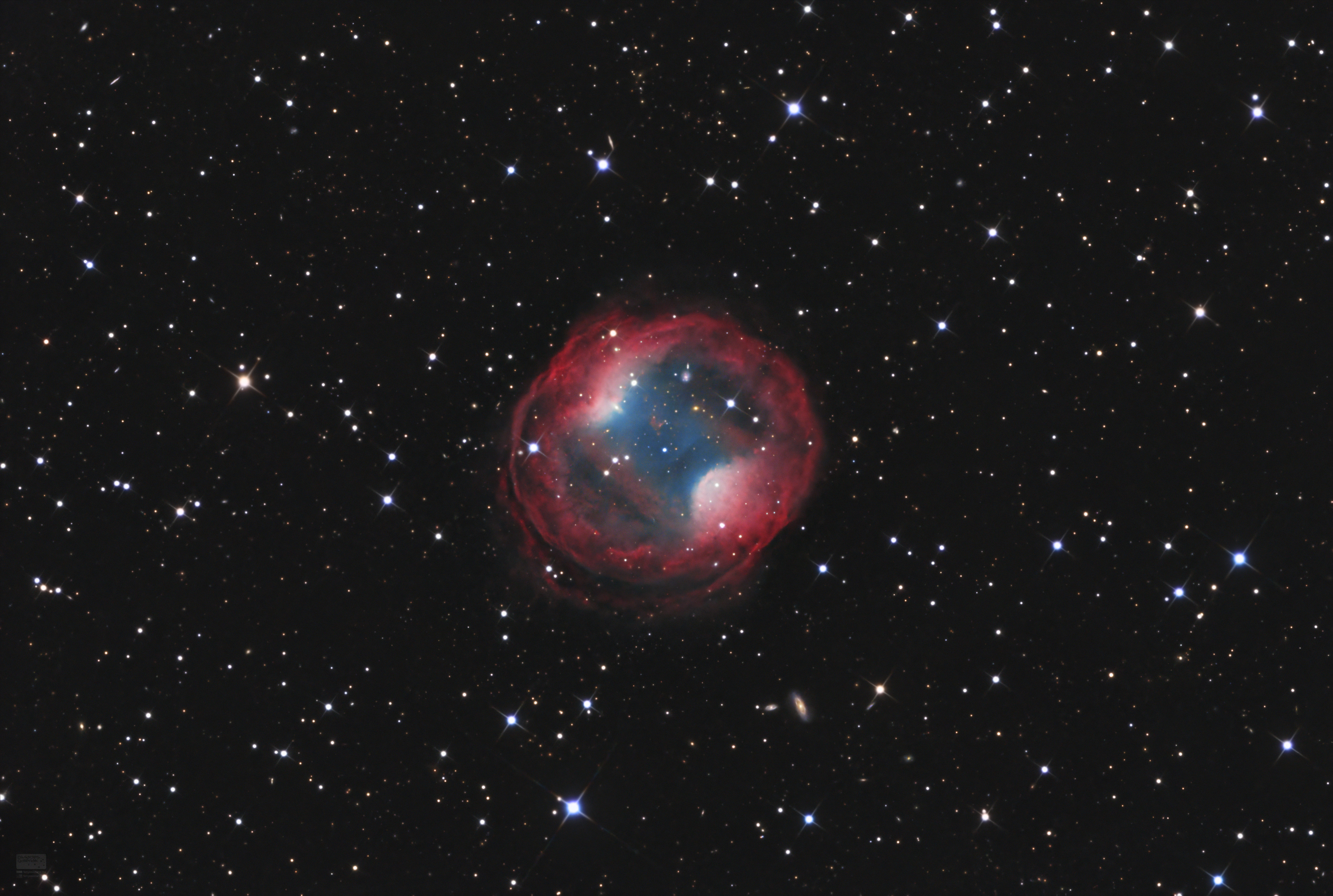 A címadó objektum egy roppant halvány, egész kalandos módon felfedezett planetáris-köd a hiúz csillagképben. Megörökítése nehéz, de különleges szerkezete, a körülötte és mögötte észlelhető galaxisok remekbeszabott elhelyezkedése egészen nagyszerű asztrofotós célponttá teszi.