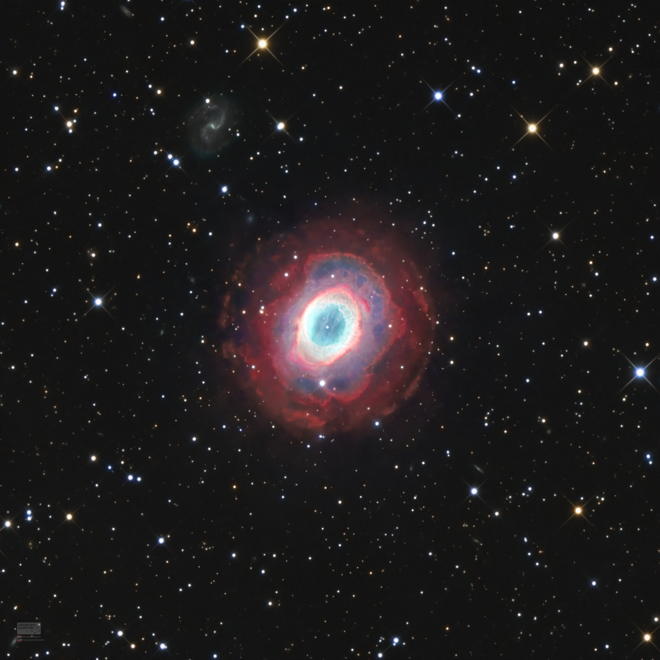 Szeretem a planetáris ködöket: megfog, hogy az univerzum léptékében nézve nagyon fiatalok és az is, hogy egy csillagélet hattyúdalát jelzik elő. Tulajdonképpen gázból és plazmából álló burkok, amelyek bizonyos típusú csillagok körül jönnek létre: azok kozmikus életének vége felé ledobott gázfelhőiből. Ugyanakkor látszó méretük roppant kicsiny. Ezen a képen a nagyon alaposan kifotózott Gyűrűs-köd látható. Igazán gyakran megörökített objektum, mert a közepe könnyen fotózható, nagyon fényes. Azonban a külső régiók bemutatása már annál nehezebb feladat.