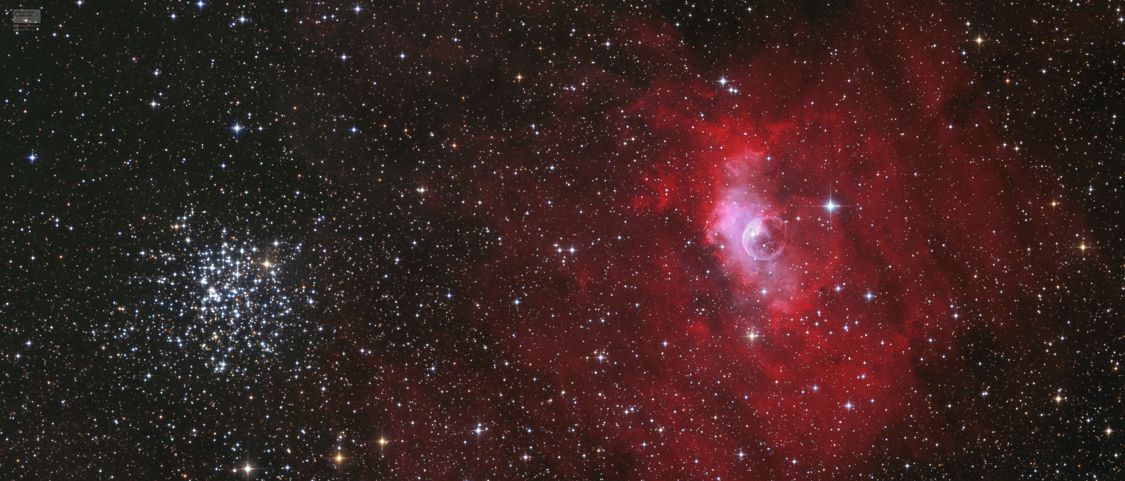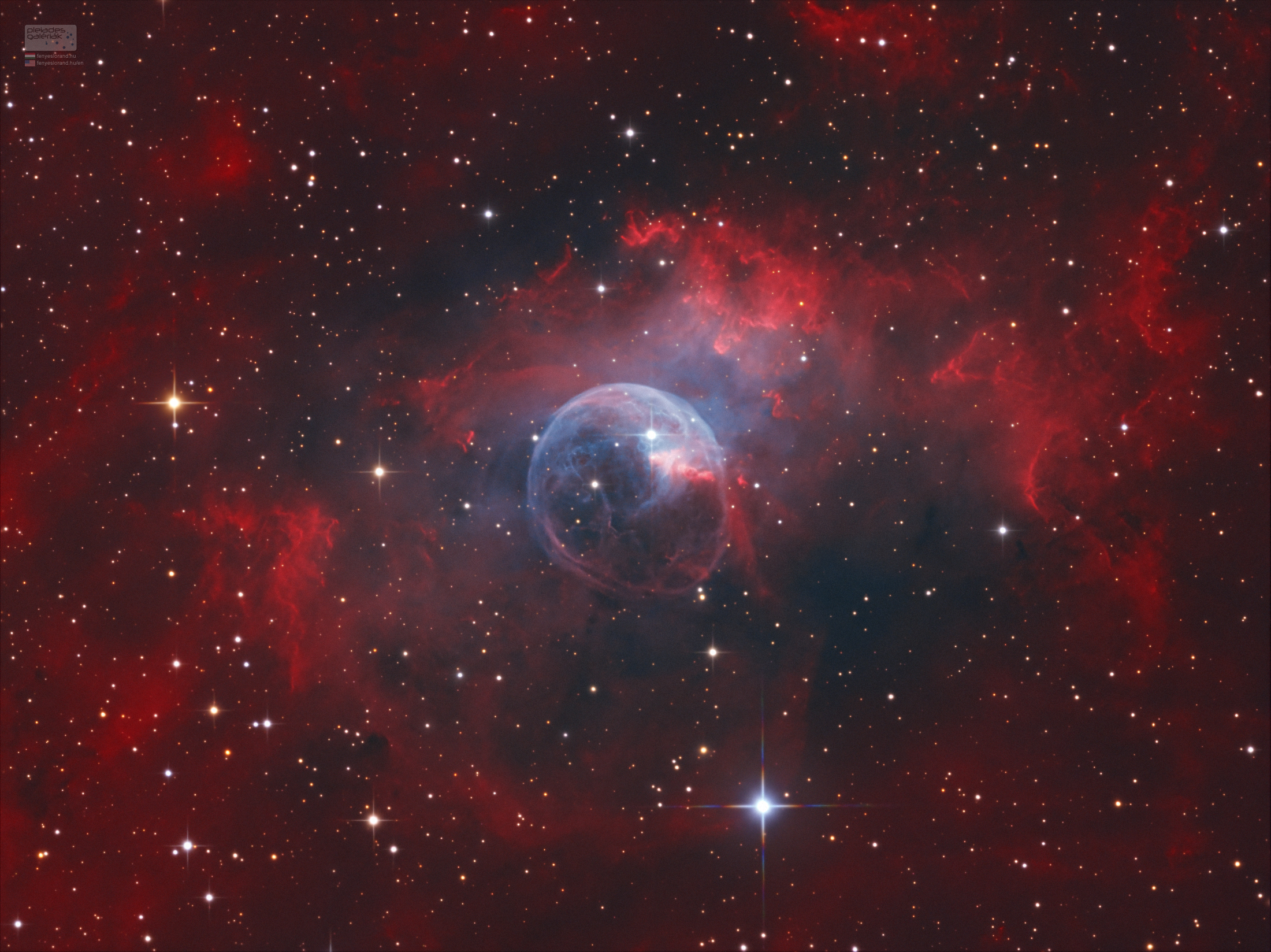 A Buborék-köd visszatérő témám, az egyik első mélyég objektum volt, amit megörökítettem kezdőként, életem első APOD képe volt 2011-ben (hű mekkora szó volt akkor), majd még egyszer volt ugyanezen a felületen talán 2021-ben is. Most újra lefotóztam, ez is egy kerek szám: a 300-ik mélyég képem, amióta elkezdtem 15 éve ezt a nagyszerű kalandot. Egyébként pedig az Optolong duo szűrőpáros következő próbája.
