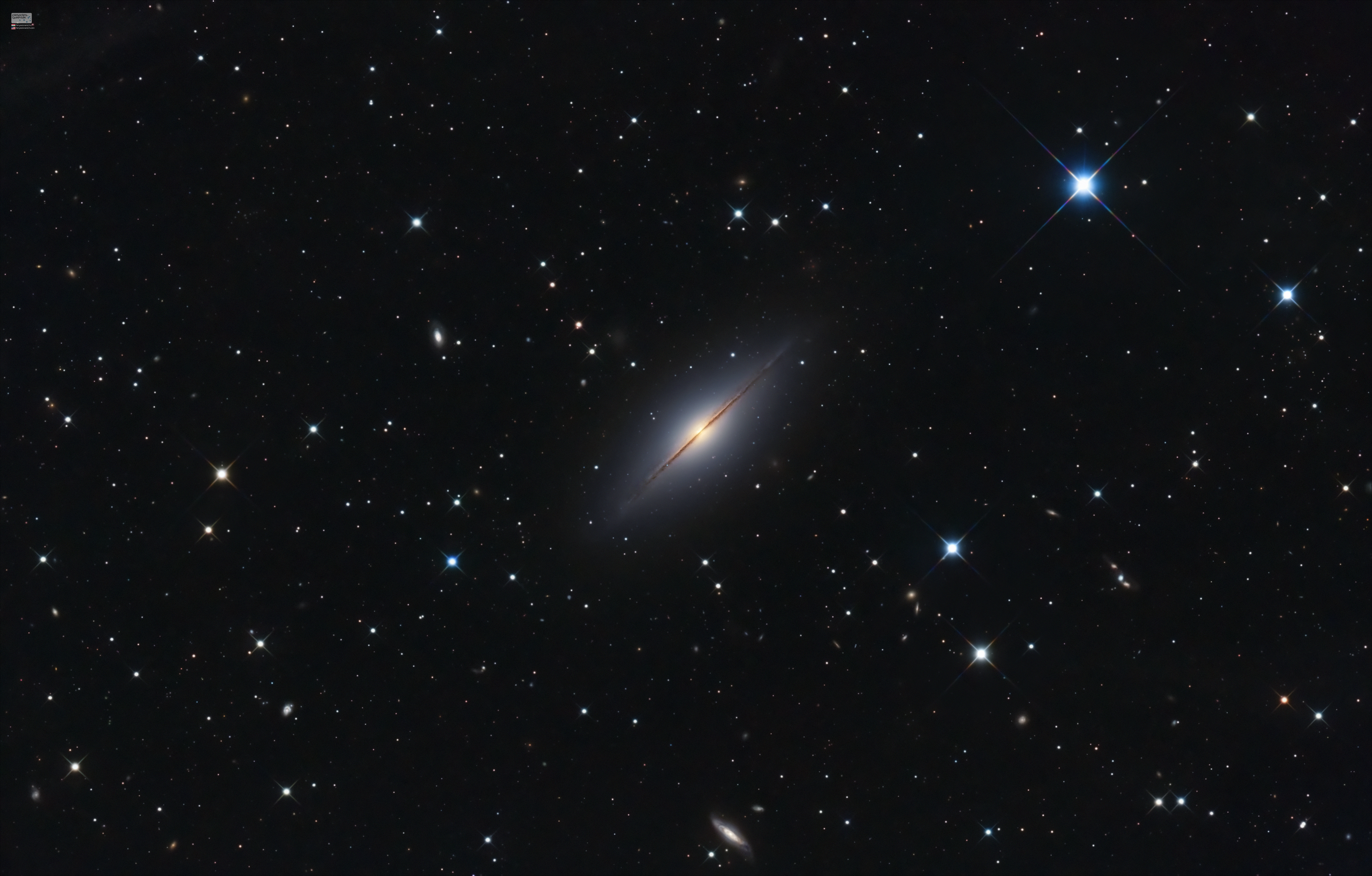 Az NGC 7814 (más néven UGC 8 vagy Caldwell 43) egy éléről látható spirálgalaxis a Pegasusban. Már rég fentem rá a fogam, korábban nem sikerült a kisebb távcsövekkel megfelelő minőségben megörökíteni. A mostani felszereléssel azonban már szívesen vágtam bele a levadászásába.